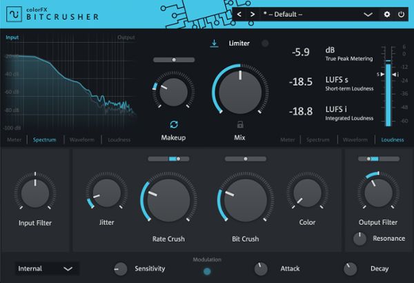 All colorFX include professional visualization for input and output from spectrometer to loudness meter.