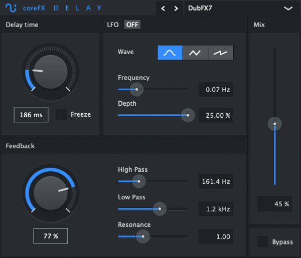 From subtle to wild and clean to dub echo: Simulate both vintage and modern echo devices with coreFX Delay.