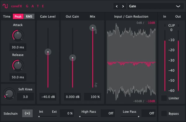 The coreFX Gate suppresses background noise such as static or crosstalk – for uninterrupted acoustic enjoyment. The gate can also work more discreetly using precise settings for threshold and decay times.